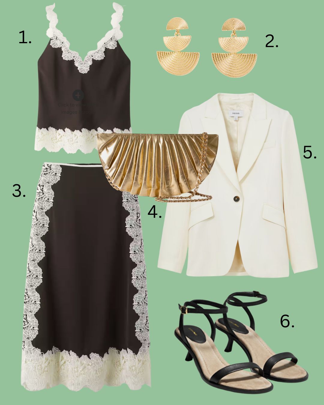 This is a great alternative to a dress if you’ve got an event coming up. I love a separate that you can wear for dress-up and that works just as well worn casually afterwards. ME+EM do this so well. This lace and satin co-ord is a perfect example. Wear the top with jeans and the skirt with a big slouchy jumper.