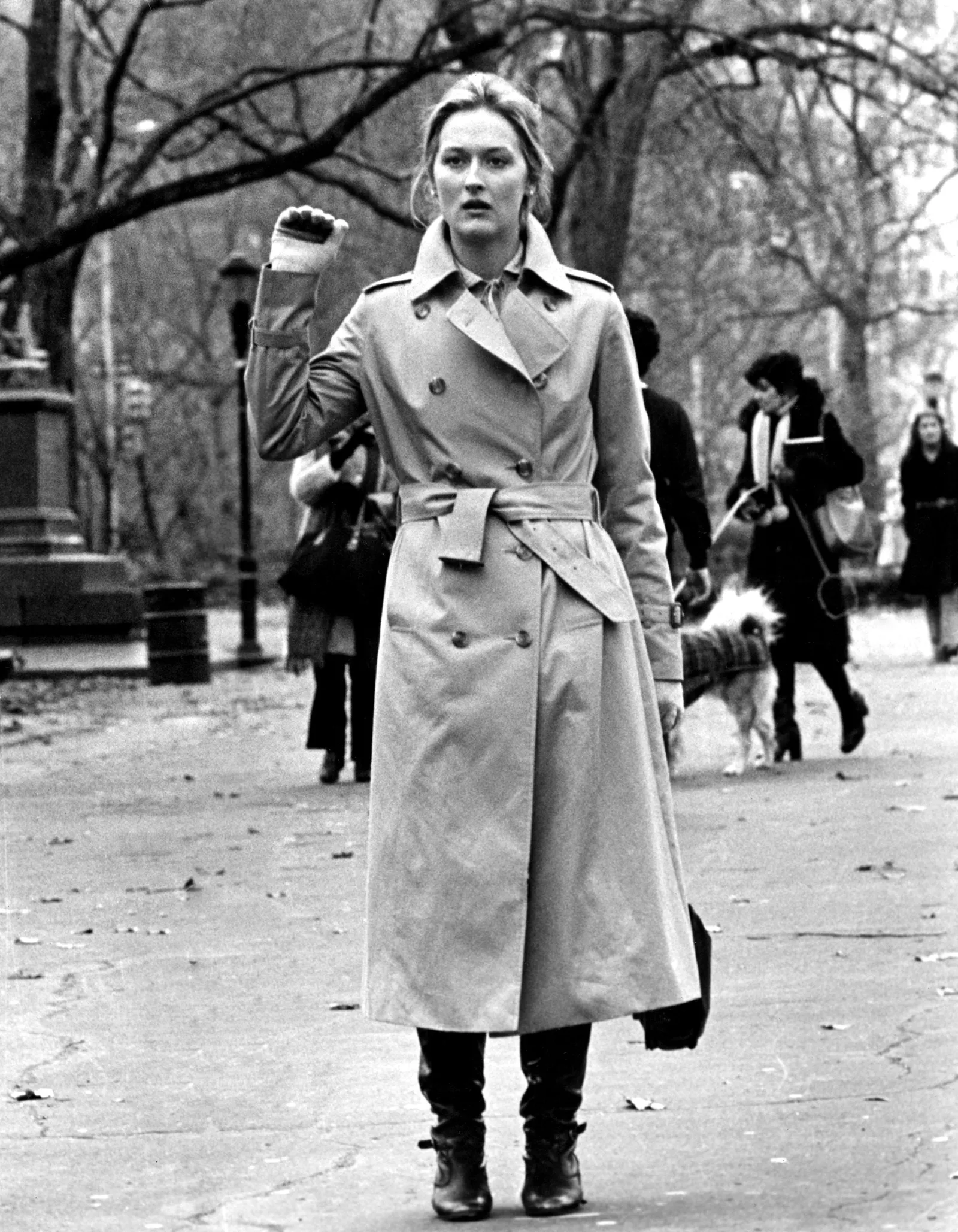 I’m still searching for the perfect pair of vintage-style, knee-length ruched boots à la Meryl in ‘Kramer v Kramer’, by the way. They are the holy grail of boots, but I can’t find the right pair with heels that aren’t too high, round toes, and wide enough to stuff my calves into. The quest goes on, but in the meantime let’s have a look at some trench-coat-based outfits to inspire our sartorial choices this week.