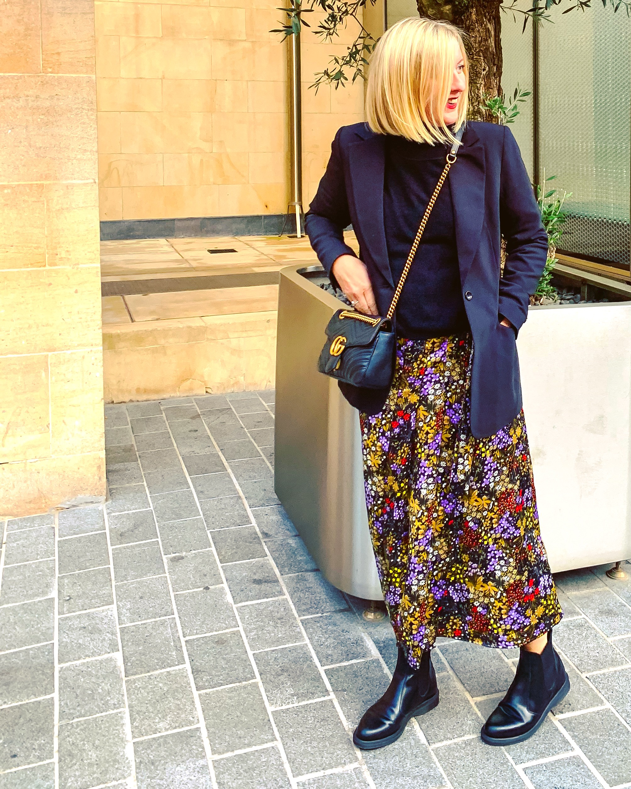 Blazer by Baukjen, Skirt by Per Una, Gucci Bag and Dr Martens Boots