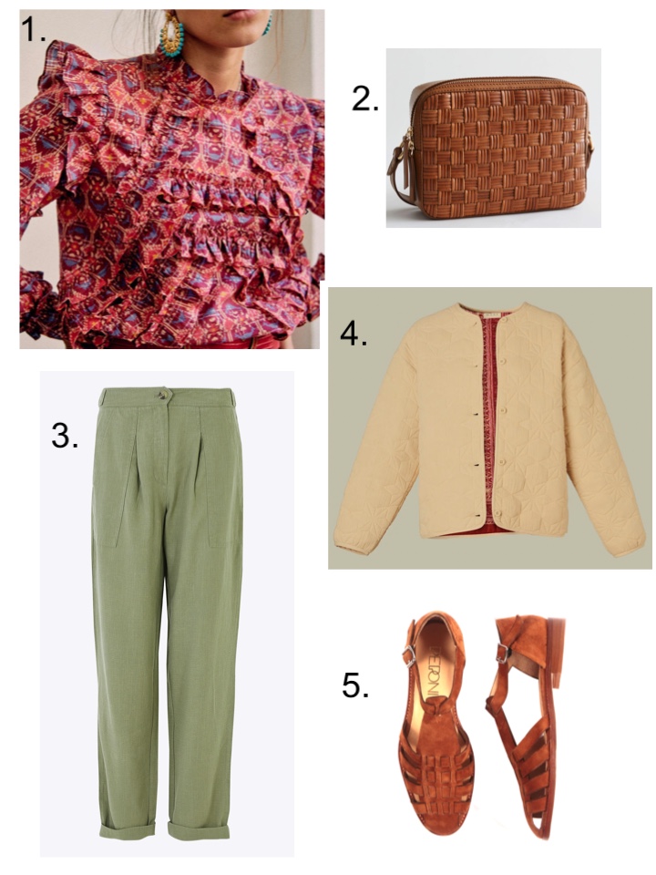 A good printed blouse is probably your easiest entry point if you’re a little reticent about patterns. You can keep the rest of your outfit simple. Don’t think about those awful polyester numbers you see in the Damart Catalogue or those non-crease monstrosities that get advertised at the back of the Sunday supplement magazines, they are the clothing equivalent of thinking about a Saga cruise or a chair for your shower. There’s plenty of time for that in the future; right now, look at cool-girl sites like Sezane.