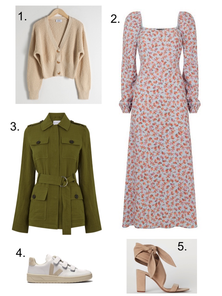 Want to wear a girly dress, but don’t want to look too girly? Add a utility jacket to dress it down. This dress has a look of the very expensive Vampires Wife brand. yet it’s less than £30 from New Look! Once again proving it pays to look around the High Street in places outside of your comfort zone. You know I’m not a heels girl, but I had to include these ones from H&M as they are just so pretty and would look so good with this dress, or just with jeans. I’ll probably wear this with my Vejas to be honest and a nice cardi if it’s still chilly.