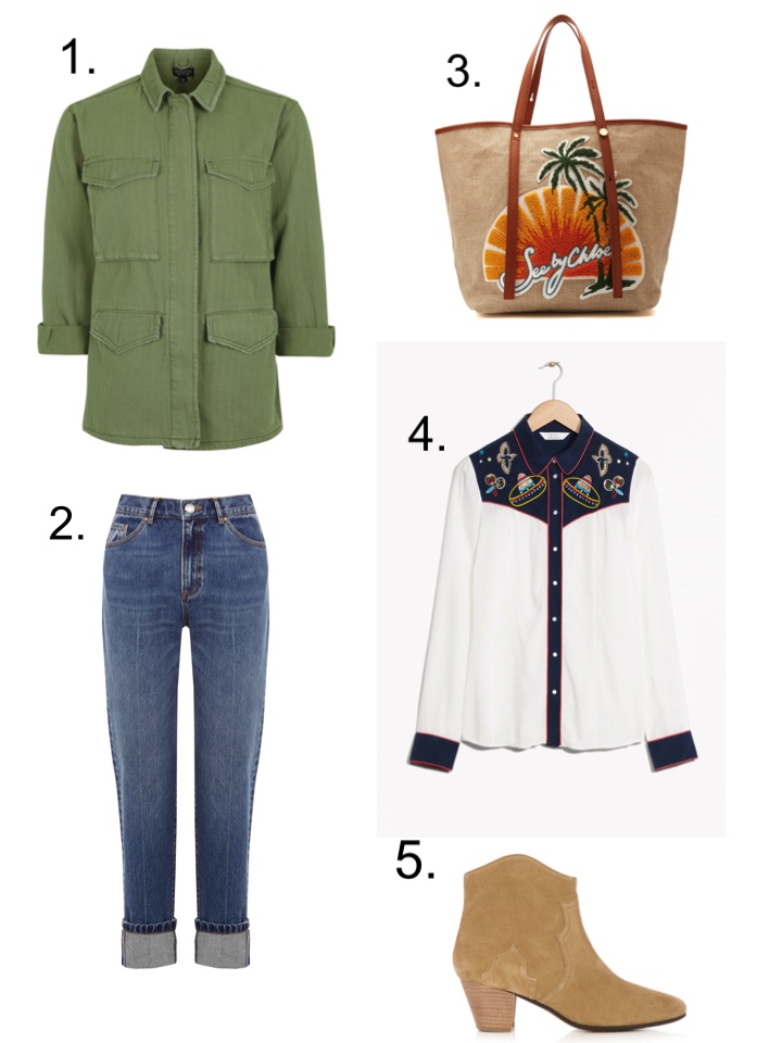 For the uninitiated amongst you this is basically a cross between a shirt and a jacket. Usually comes in Army Green colour, but I also have a navy one that works well too. Once you buy you will wonder how you did without it. Perfect for days when you might just get away without an outer garment, but just need that bit of security that a jacket gives. Wear over sweatshirts now, and T‑shirts when we get over 18 degrees. Or go a bit Cowgirl with this & Other Stories shirt that I now must have!