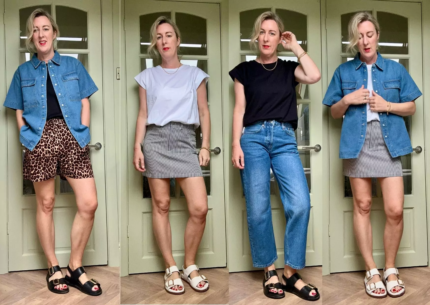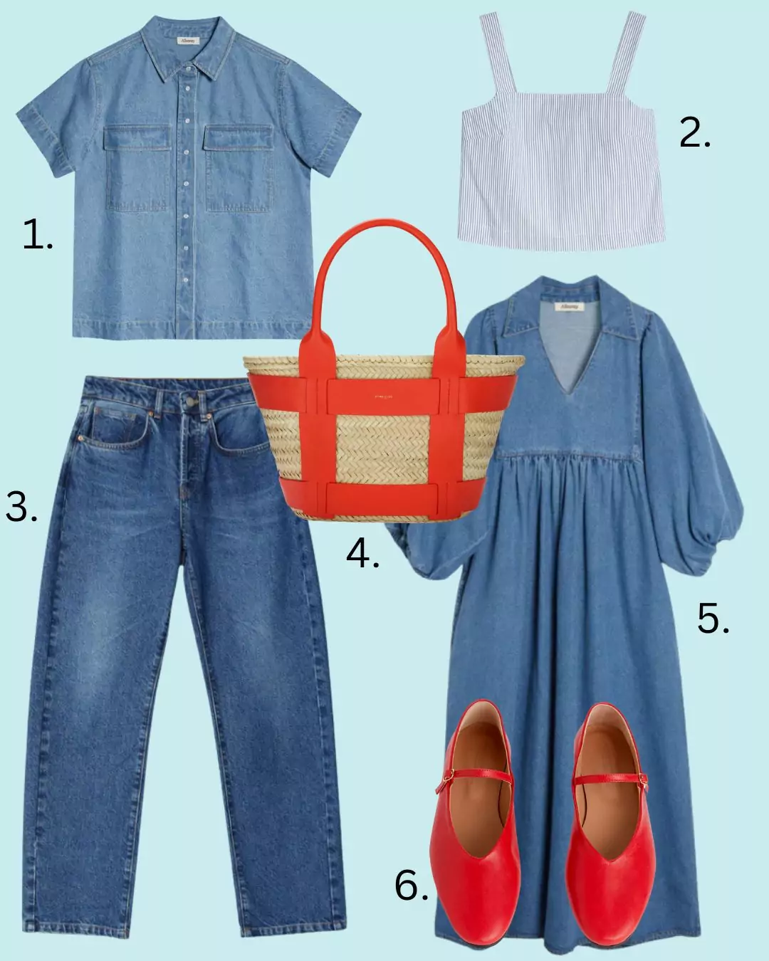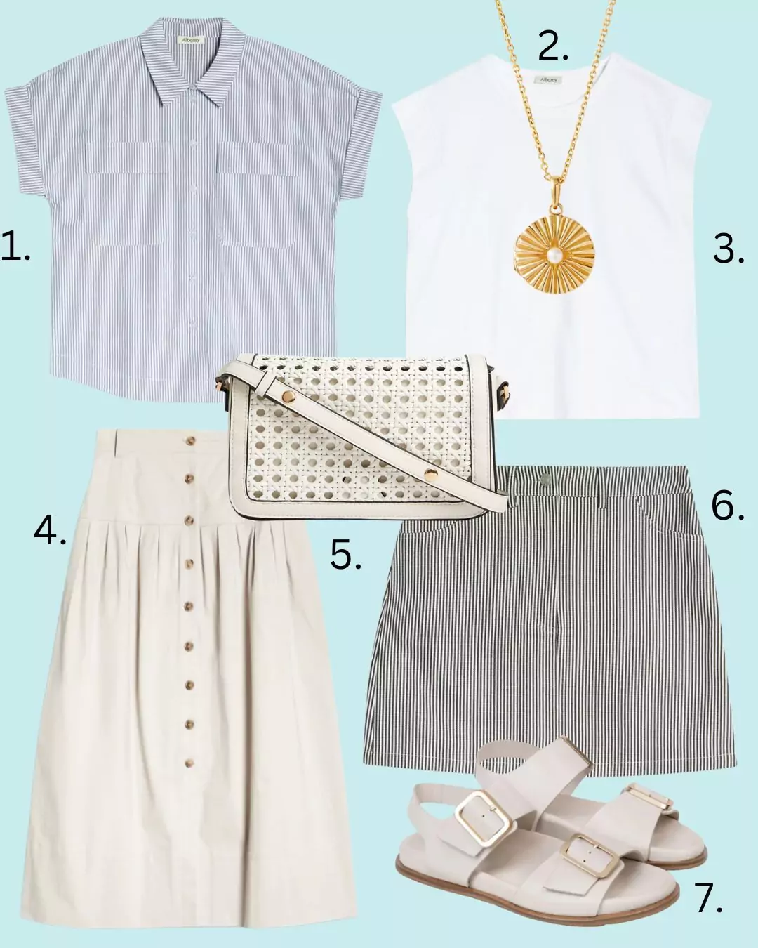 Don’t let anyone tell you that you shouldn’t be wearing a mini skirt at your age. If you like it, do it. If you are more of midi length lady then the new drop-waist style is big this summer. I love this button up one and also this blue stripe version.