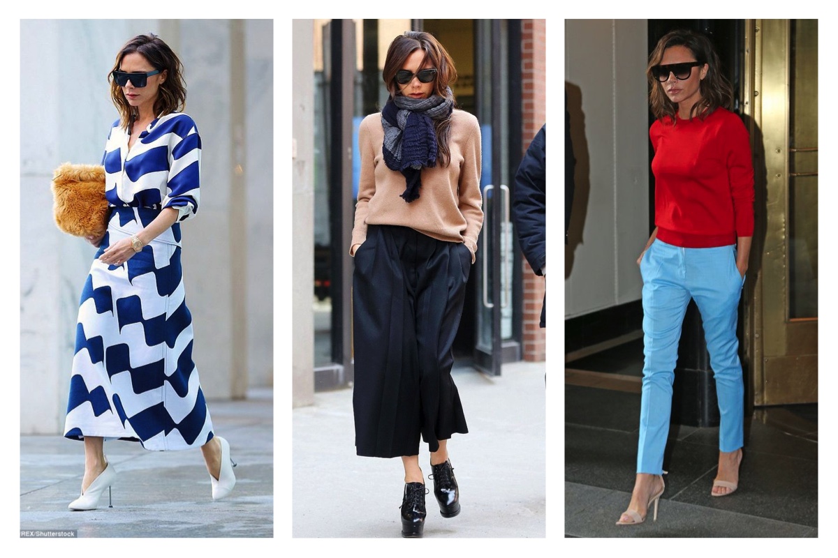 Now, before you start berating me for saying that Victoria Beckham is no style icon, just take a look at her now. Gone are the hair extensions, the tight dresses, the silly platforms and the weird ‘Balloons on a Stick’ body shape. She seems to have finally found her fashion groove and can now do no wrong. Some people are born with style, some people, like Vicky here, have had to learn it. She seriously did her homework and now has a fully fledged masters degree. I salute her. Say what you like, but for me she’s getting it right. The wide leg trousers, the bold prints, the loose-fitting shirts, the colour-blocking, her own fashion company, 4 gorgeous children and THAT husband. I’m sure she goes through the same existential crises as the rest of us, but on the surface she is winning…
