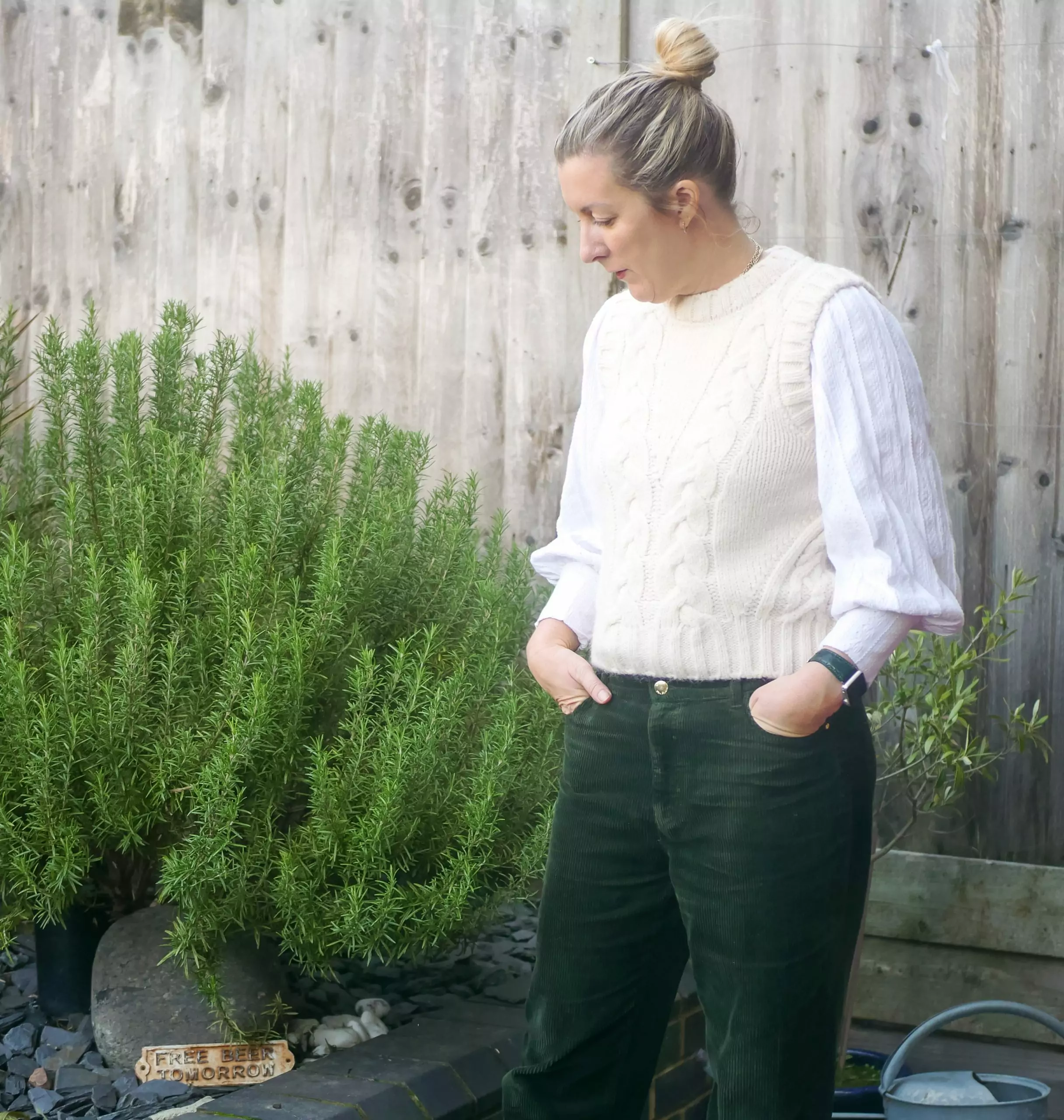 Here’s me late last year (you can tell due to old fence) in my cable tank top I got in the Mango sale, unfortunately this one is now out of stock, but I found some similar ones. In the same way as getting more wear out of dress, use these sleeveless jumpers to show off your pretty Spring blouses instead of hiding them under a cardi or a jumper. When you got a nice puffy sleeve, you don’t want to be hiding it.