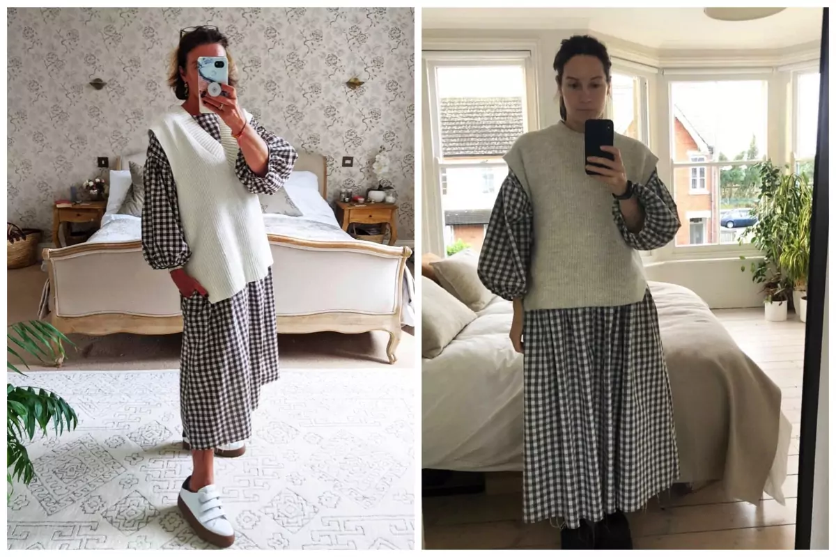 Here’s a great way to extend the wearability of your favourite Buffet Dress. As evidenced above by Melissa @backofthewardrobe70 (left) and @emily_silverwood (right) who are both going for a tunic style over the top of their April Meets October dresses. I just ordered one of these dresses from Studio B fashion. Hopefully I’m able to style it as well as these ladies have. I found a more budget version of this dress at H&M. Not sure it includes pockets though. I suspect for £20, probably not. A tank top over a long sleeve dress ensures you can see most of the dress but still keep warm. Add secret leggings and you’re good to go.