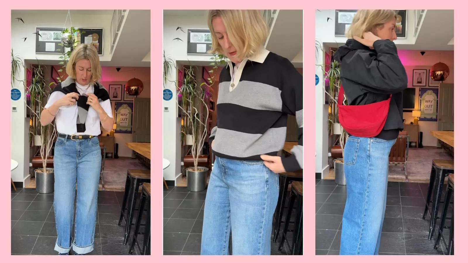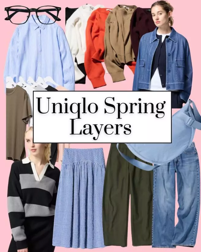 This month I am focusing on layers. I tend to start with an Airism T‑shirt, layer it under a great polo-style sweater add some wide-leg jeans, and finish with a windproof jacket (which has a hidden hood) that is perfect for spring wind and showers