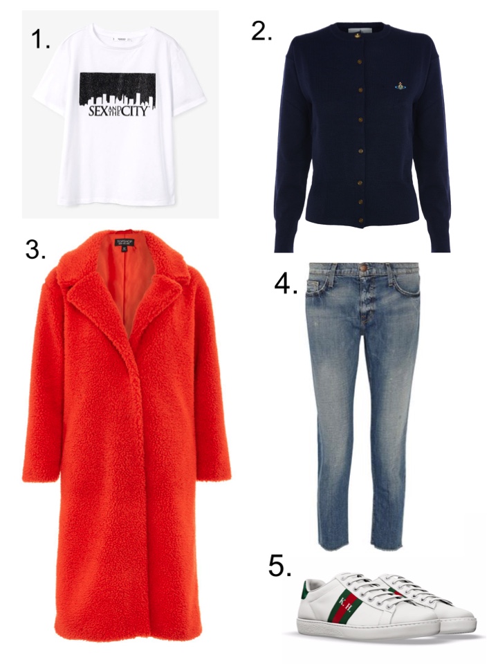 This one was just an excuse to show you this beauty of a coat from Topshop! below. Please can someone buy it, look at the colour! I love it, but I really can’t justify yet another coat. Maybe I shall add it to my Christmas List. I will share my Christmas list with you soon and also some gift ideas for everyone else. Come to think of it this Mango T‑shirt is also on my list, so are the GUCCI PERSONALISED TRAINERS!! (be still my beating heart) as is a navy version of my Viv cardie. I am so annoyed with myself that I washed the black one last week on the wrong wash and now it’s much snugger than I would like. When will I ever learn part 2?