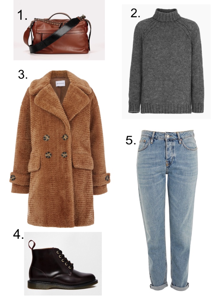 I guess it’s not officially a faux fur, but it’s still massively high in the cosy stakes, so we shall add. A good teddy coat will see you through the cold snap. Keeping it casual again with a soft knit from Feather and Stitch, jeans and my new obsession, Dr Martens boots. I definitely do not need new boots, but I just love these, my friend Phoebe has them and they look so cute. Dr Martens have really  moved on since I got my first pair back in the late 80’s. I remember the ‘breaking-in’ period was a long and hard slog that involved at least 2 packs of Elastoplast to get you through. Now, though that all seems to have changed, my eldest son has DM school shoes and not a blister was in sight. That’s progress for you.