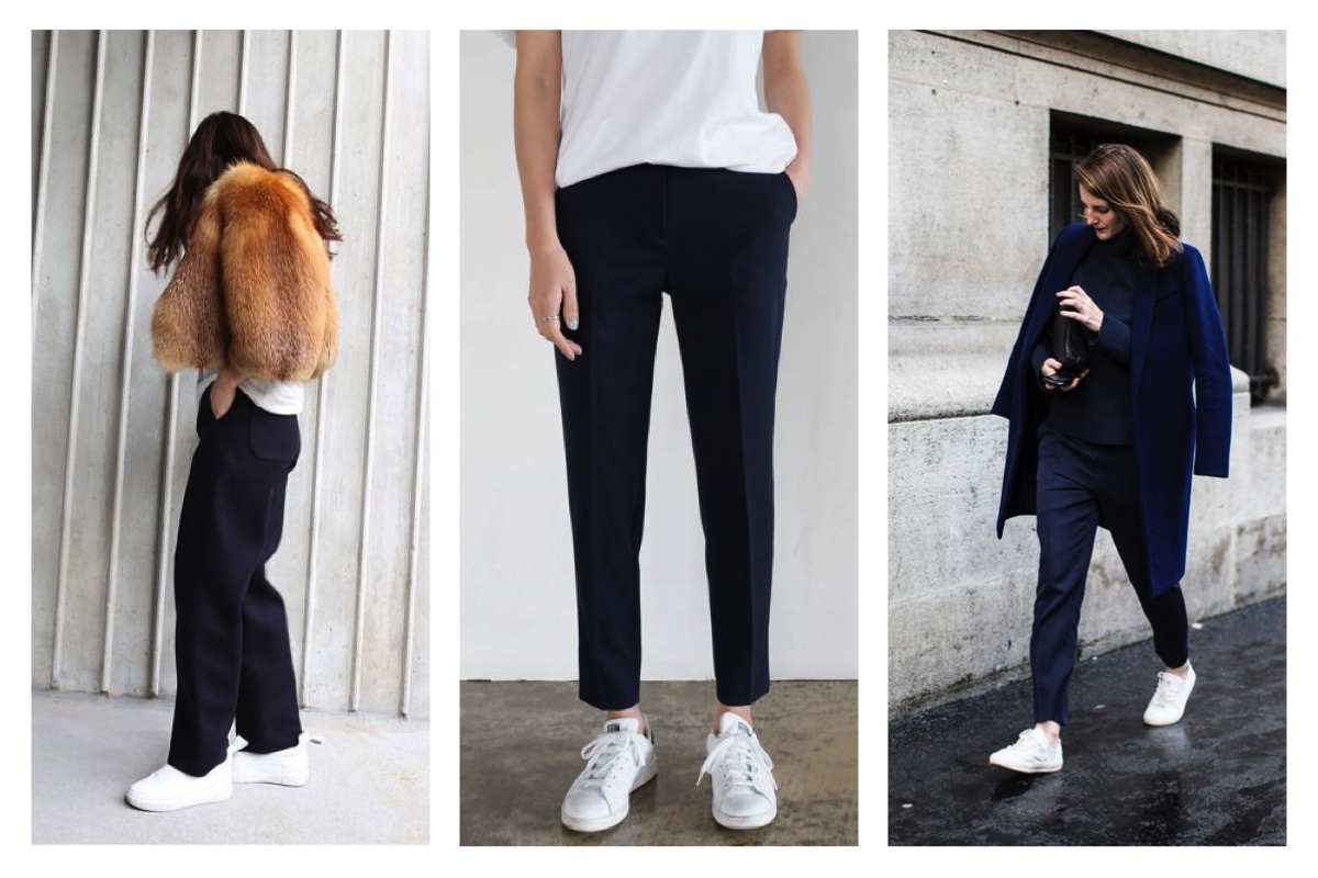 Starting off with my go-to footwear to pair with navy trousers. If you’ve been reading this blog for a while, you should now all have a pair of classic white trainers in your wardrobe. The most iconic ones are always going to be the original Stan Smiths. I’ve added MY Whistles coat, but I think it’s selling out quick, if it has by the time this is published then try John Lewis or Selfridges, they also stock Whistles and they honour the current 20% discount until Monday too. This is the Phoebe Philo look that I love, slouchy polo neck with a beautiful pair of tailored trousers and box fresh Stans.
