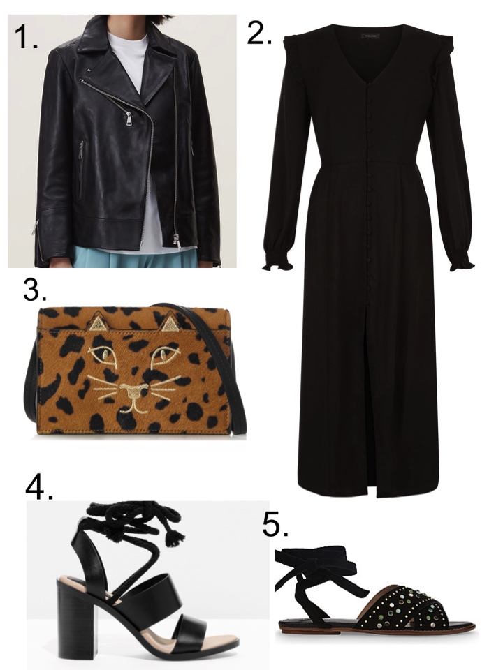 If you want to be a bit more girly, but not too twee, then wearing your leather with a dress or a skirt just toughens it up a bit. This dress is from New Look! it also comes in Red and Blue and that Finery leather jacket is on sale and it’s an absolute classic design. If I didn’t already have one, I would totes be buying this!