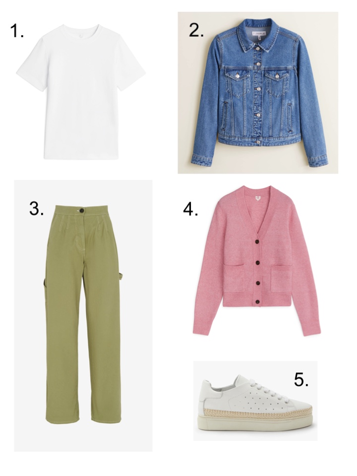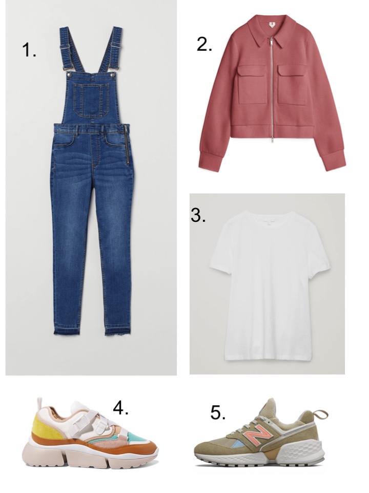 I am having a bit of renewed love for dungarees. They come into their own at this time of year and they really are the perfect weekend attire. I almost always wear mine with a simple white or black t shirt and trainers. This pair from H&M seem to be the closest I’ve seen to the great Madewell ones I bought last year (now unavailable in most sizes unfortunately). Along with trousers, Cos do an excellent range of plain t shirts, this is the one I like but there is a style for everyone. Their V Necks are also very good.