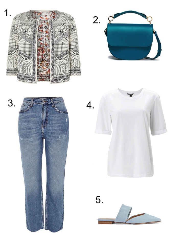 This is the classic White T Shirt look. Like my teenage heart throb James Dean, but you know, the female version. This one from Baukjen ticks all my boxes (use code WMM20 to get 20% off everything at Bauken). I know I promised not to mention these River Island jeans again, but I’ve barely worn any of my other 20-odd pairs since I got them, so here they are again. They are the best. You’ll need a plain white tee if you’re going to wear a fancy patterned jacket like this one from Monsoon. It could easily pass for Marant AND it’s reversible just like the real thing too.