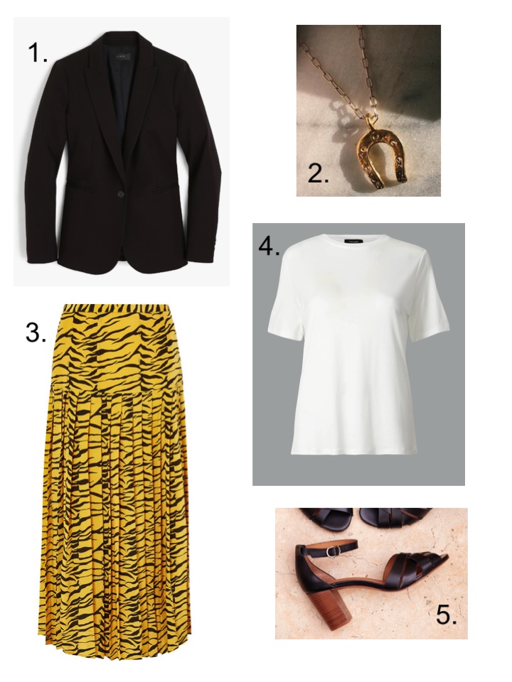 I know we should all be braver in our fashion choices and be bold enough to clash patterns, but I find that a hard look to pull off. Instead pair your animal print skirts with your t shirt. I love this Rixo Skirt and I’m adding some heeled shoes this week. I think even I could go for these ones from Sezane as they have a decent chunky heel that isn’t too high. Throw on a cotton blazer to really pull it all together and layer up your necklaces to add interest.