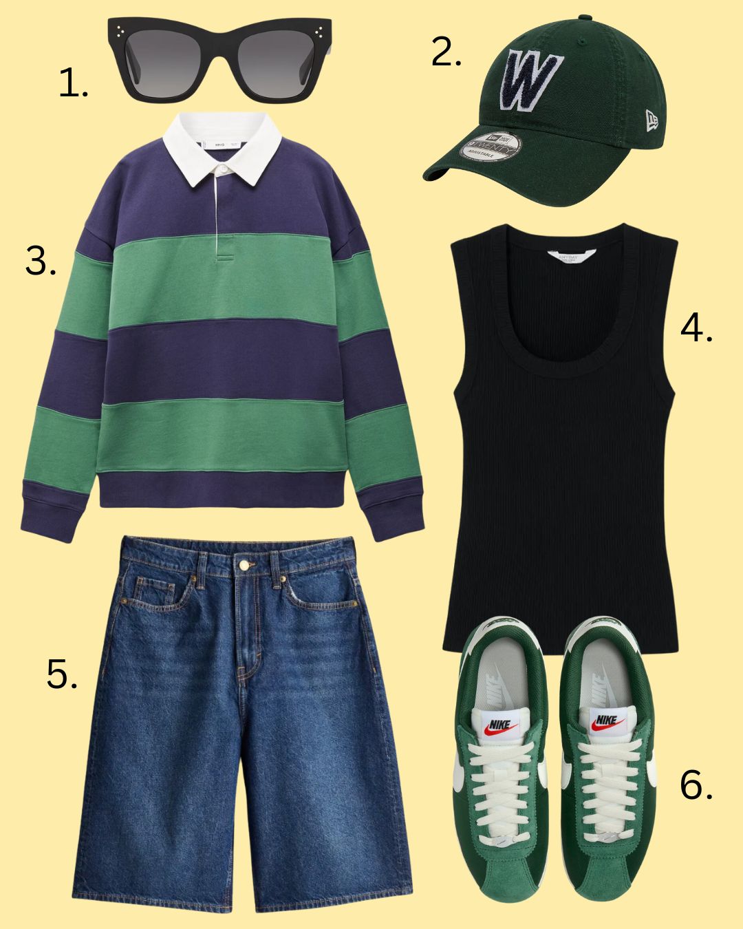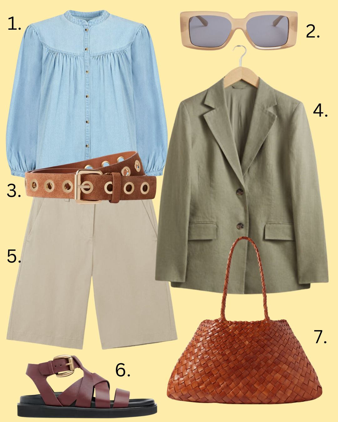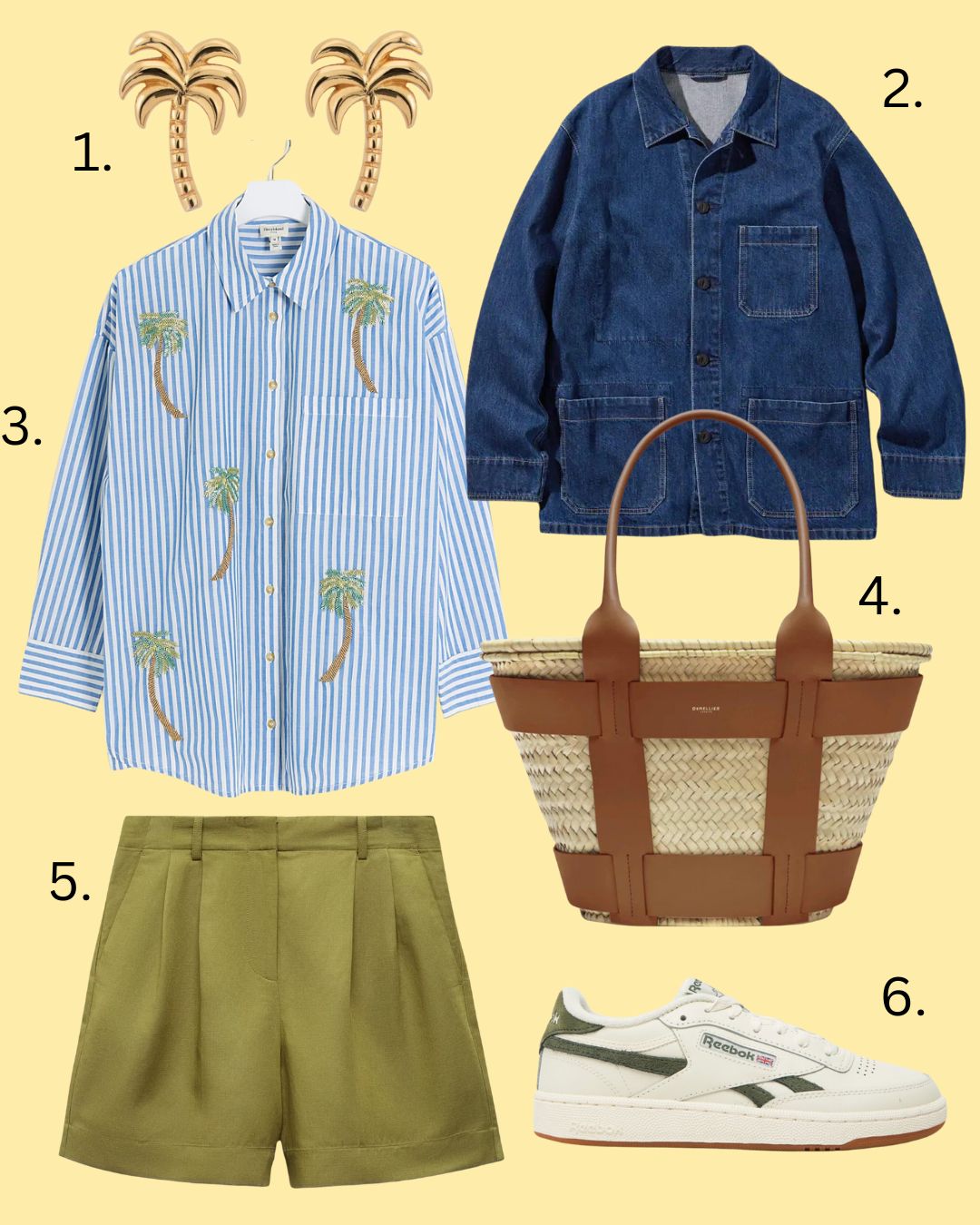 They don’t have to be khaki, but we know from last week that it’s a very useful colour to have. I feel like this would be a great look for a city break, but am adding some palm trees in case your city break is somewhere slightly more tropical than Manchester or Glasgow. Although, who knows? There may well be a crop of palm trees somewhere near the Arndale Centre; you see all sorts these days.