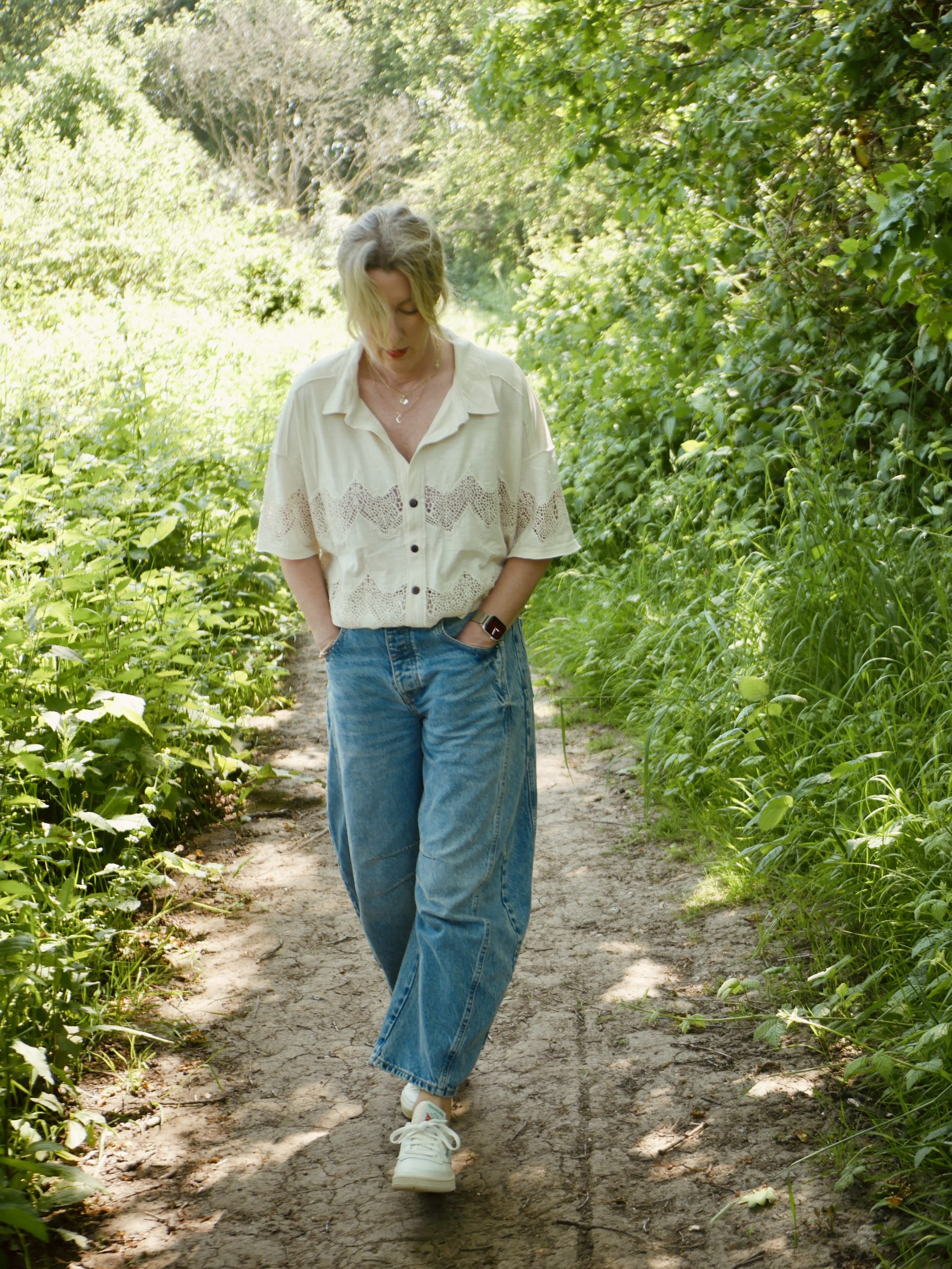 I hope these are still in stock by the time you see this. I’m writing this on Thursday, so don’t sue me if they’ve gone. If Mango have any sense, they will have done a big order this summer as they are the best shorts ever, and, yes, I am including the old Topshop shorts (RIP) in this sweeping statement. Don’t be alarmed that they look very short on the model, she’s probably very tall. Here’s me wearing them. In fact, wearing almost this whole outfit. I’m 5’7 and size 10. I have the shorts in a size 12 because I like some room to manoeuvre in my short shorts.