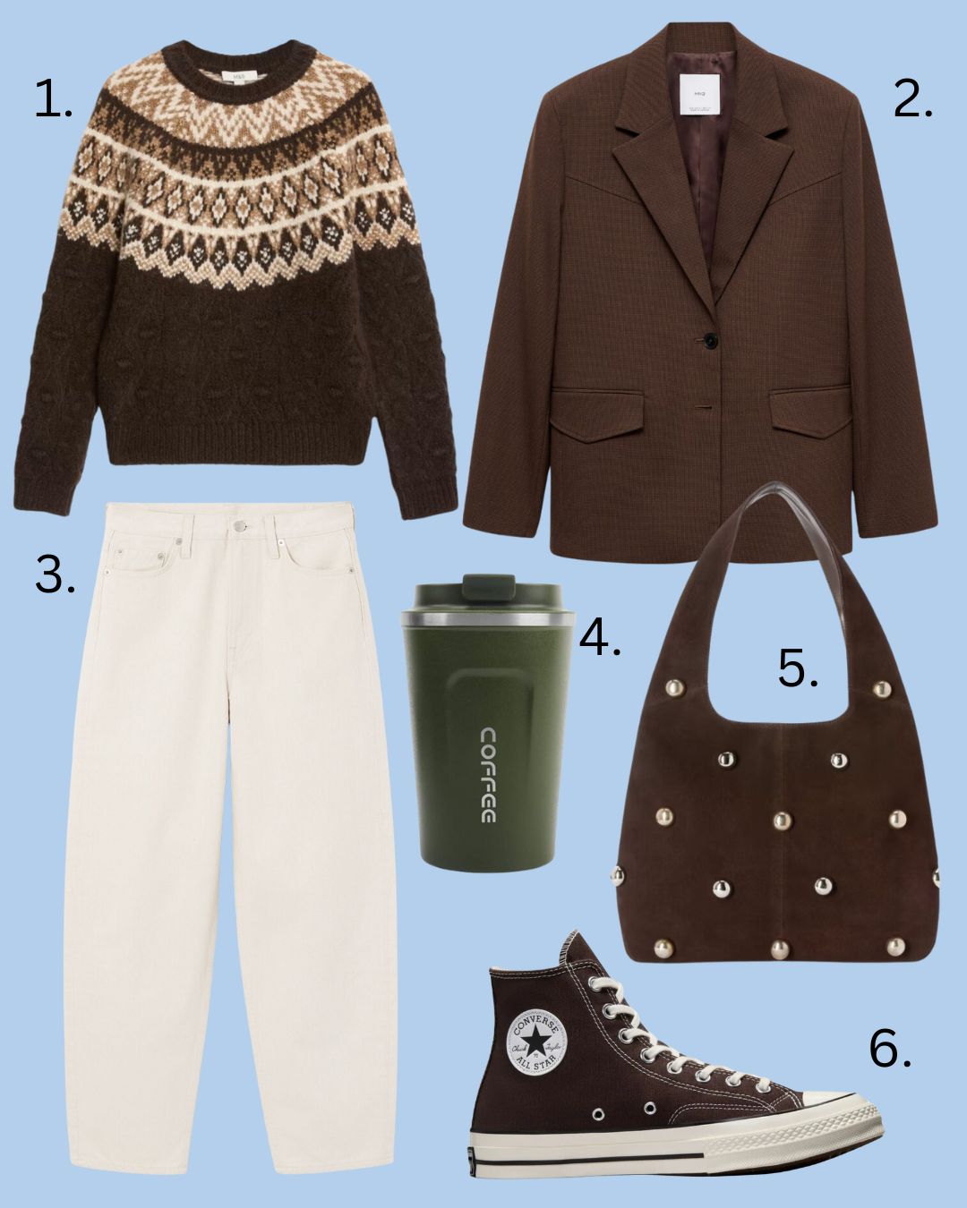 You could use any high tops here, but Converse are a perennial classic and for some reason I wear mine more in the winter than in the summer. Which, come to think of it, is somewhat counterintuitive because they’re made out of canvas so absolutely no good if you get caught in a deluge. BUT you can wear long socks underneath, and if they get too filthy you can wash them in the machine. Probably the only trainers that actually come out good after a machine wash. I’d do the sandwich trick with white jeans in winter and match the top to the bottom and stick the jeans in between.