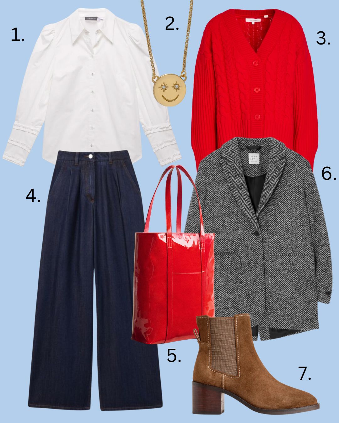 Wide-leg jeans in winter are, let’s face it, tricky bastards. You need to elevate your hems a bit or else you’ll end up with the ‘slow, wet creep’ when the rain soaks from the bottom of your jeans right up to your shins. The best way to avoid this is with a pair of mid-heeled boots. Personally, I think round-toe, block-heeled boots look best with the wide-leg style. It kind of mirrors the 70s look.