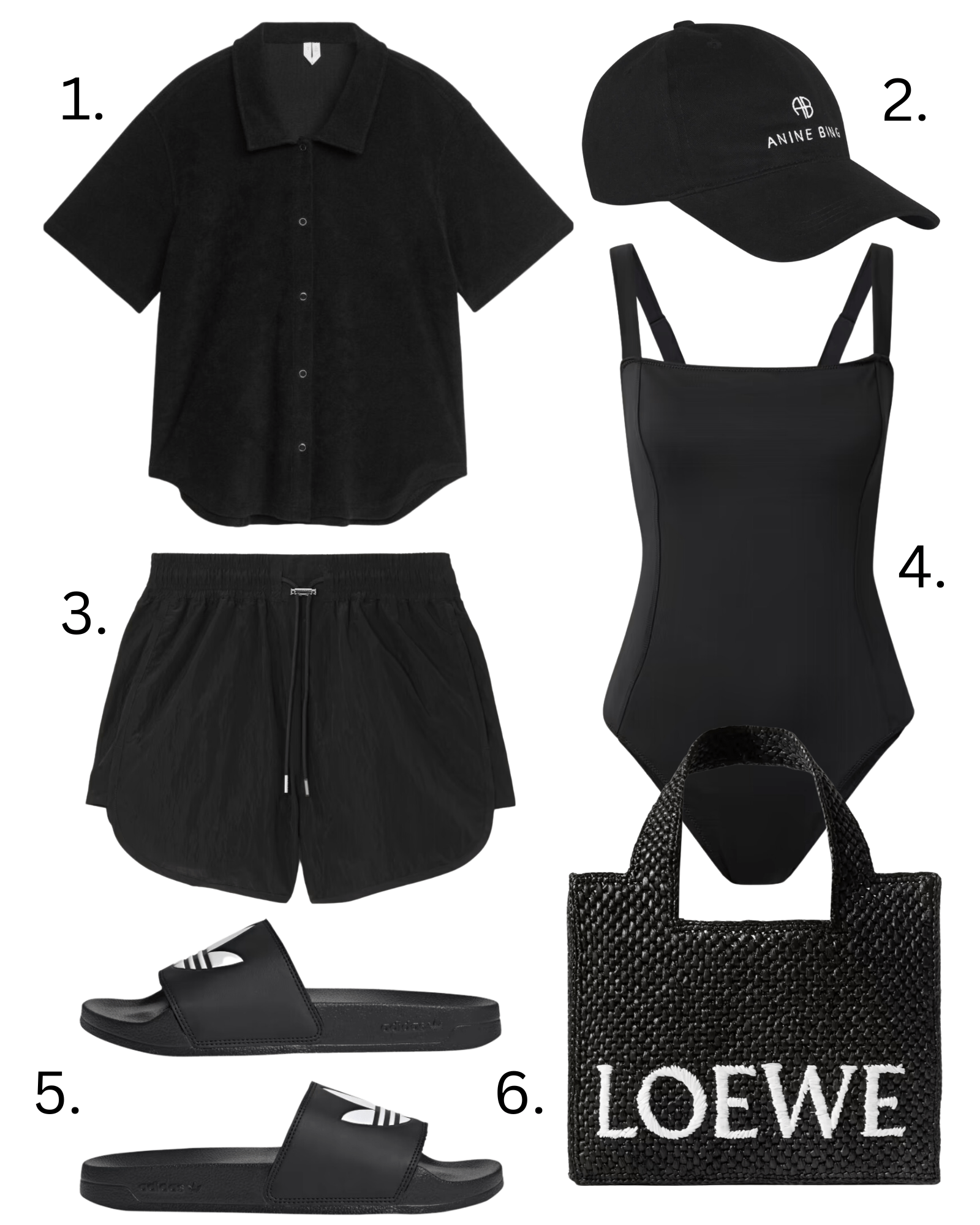 Yes, you can wear black to the beach. I feel like this look is very ‘modern-day-chic St Tropez’ (not that I’ve ever been there). I can see those minimalist Olsen twins wearing something like this by the pool. Head down, covered in a cool baseball cap, as they pretend to read Nietzsche on the Kindle, but really it’s the latest Colleen Hoover. And despite what my 16-year-old says, I think these Adidas slides are cool. I have a pair and he says I look like I should be standing on the doorstep in my dressing gown smoking a Lambert and Butler* when I wear them.