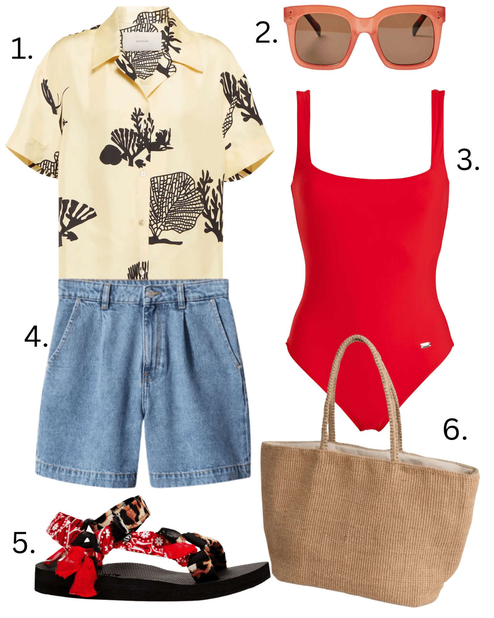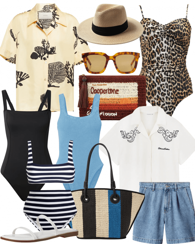 I do love a red swimsuit. We may never have looked like Pammy (I mean, did anyone?), but there’s just something about that classic red costume. Wear with your favourite pair of denim shorts and throw a short-sleeve shirt over the top. Possibly my favourite beach look.