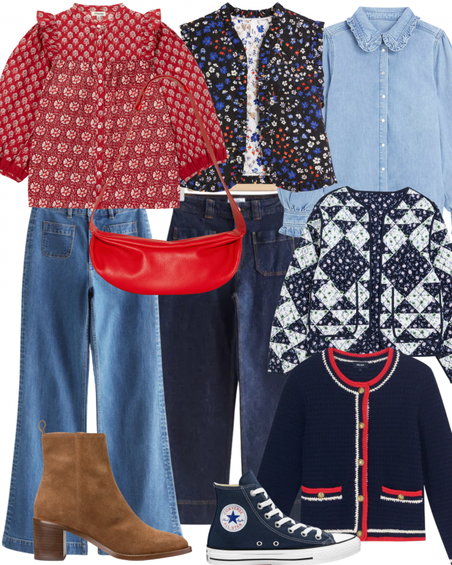 This one is just for me as I already have this blouse, these jeans and I bought that waistcoat in the sale from John Lewis this week and I immediately wore it out for lunch. I think it’s a cute addition to the classic white blouse and jeans look. I’ll wear it with my Converse and I’ll dig out that knock-off Loewe basket bag I got on Amazon a few years ago. Be quick if you want a similar style as M&S have brought back their sell-out basket bag again this year. By the way, these flared jeans from & Other Stories are SO flattering: they are good and stretchy and make your legs look really long as evidenced above. I’m a 12 and 5’7 for reference, I bought a size 38.