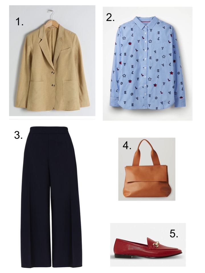 A good pair of trousers should be the basis of your working wardrobe. I would more than often plump for a cropped wide leg as those are my trousers of choice. Find good ones at Cos, & Other Stories and John Lewis. I have these Culottes from John Lewis (currently on sale) They are made from wool, but are quite thin so you shouldn’t overheat in them for the next month or so. I’m not usually one for ‘fun’ shirt, but this one from Boden is so much like one I nearly bought from Current/Elliot early last year so it gets the OK! (it’s also on sale which helps) Found some decent Gucci Loafer dupes from Dune for you, they come in a wealth of colours too.