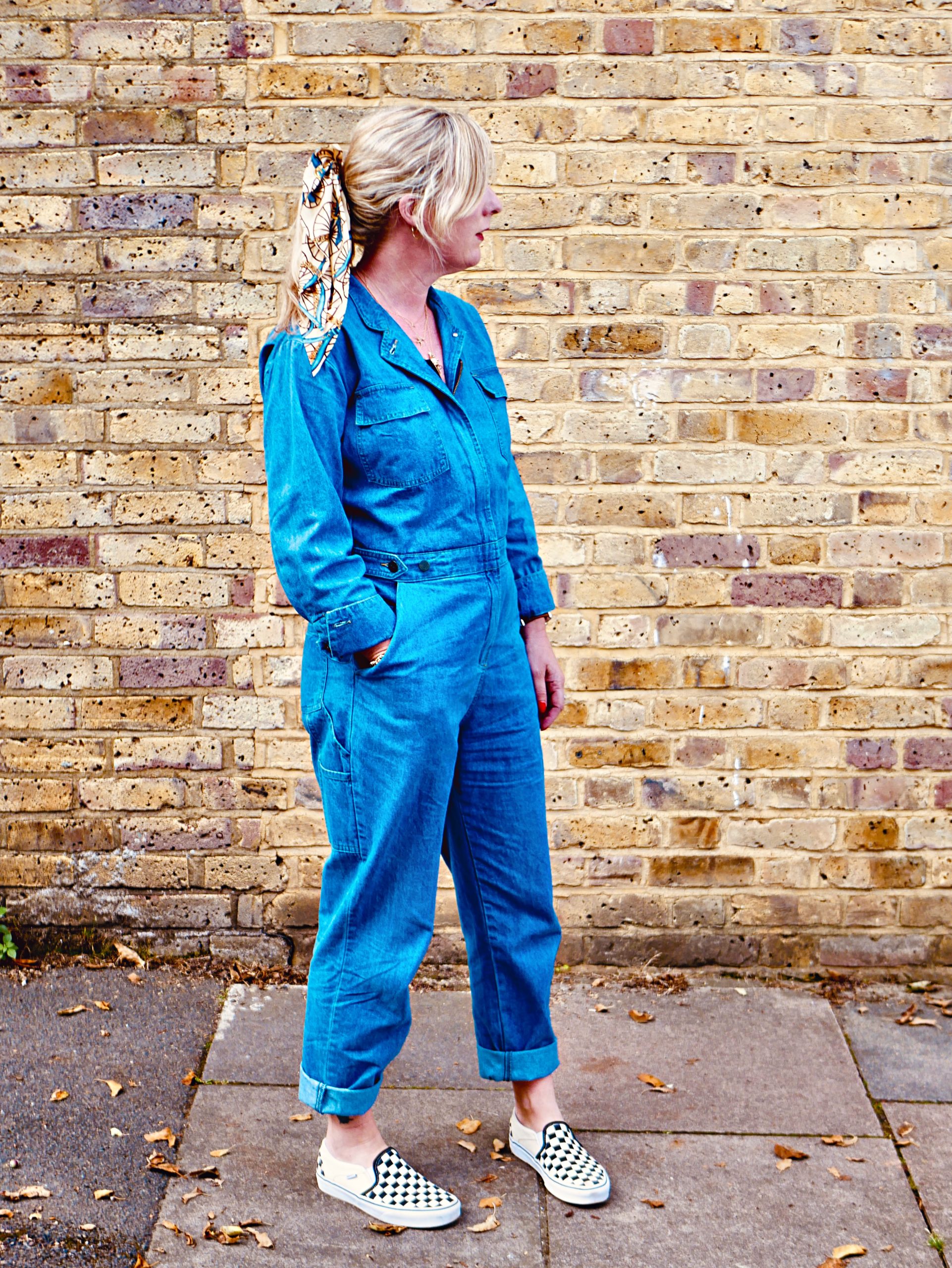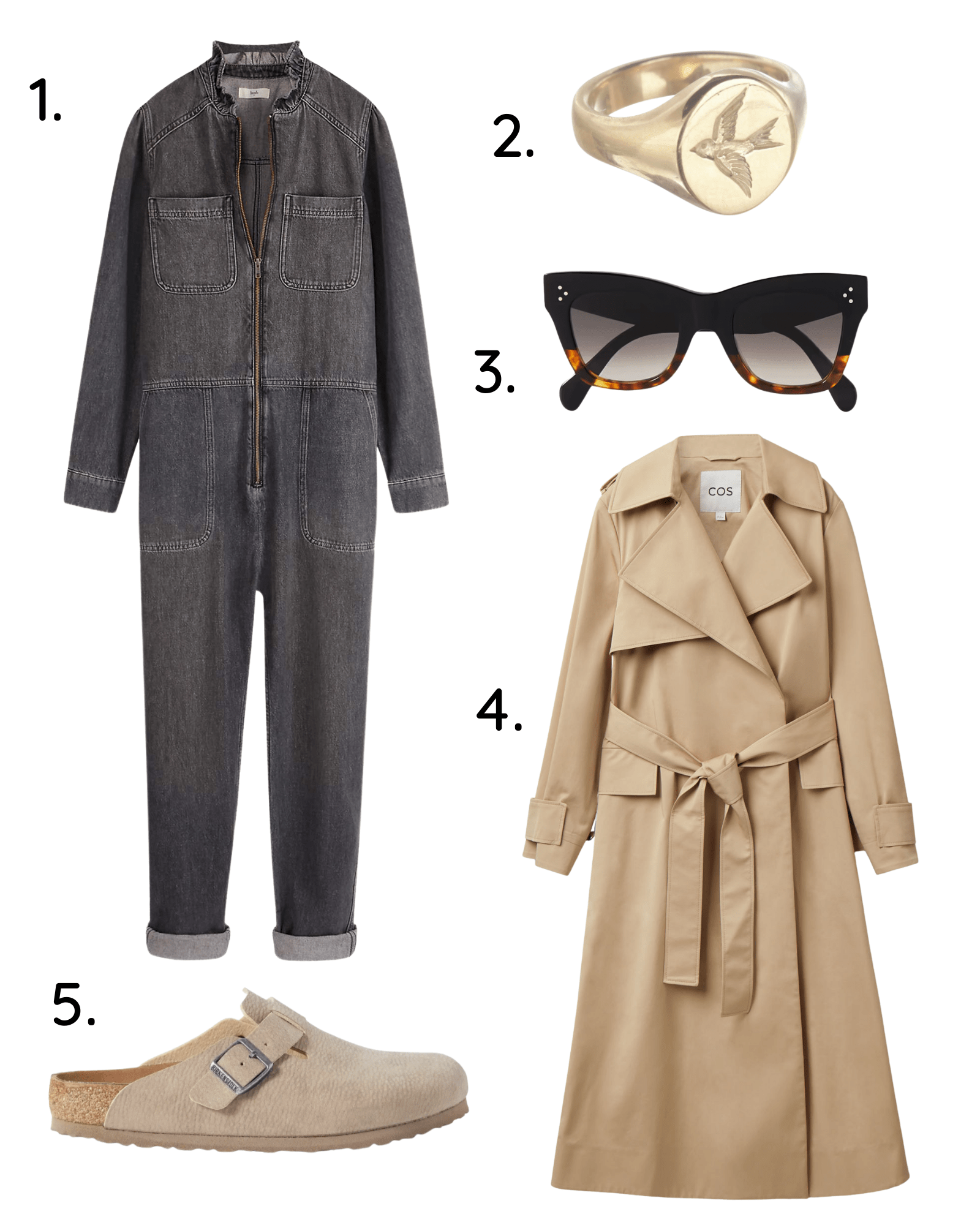 I know this is the style that a lot of people find the trickiest as it really can conjure up ‘I just got off shift doing a tricky MOT and now I’m heading down to the pub’ vibes. There’s not much I can do about that image apart from say ignore those thoughts and just go for it. I’m wearing my favourite denim boiler suit from Spry Workwear. Unfortunately I don’t think they are making the denim version anymore, but check out their site as they do have a navy version on sale and their clothes are perfect for tall people as the leg length is good and long. On the high street I find Hush is very good for this kind of jumpsuit. Usually true to size too. Pair your denim with a trench coat and some Birkenstocks. I’m really into my clogs again right now.