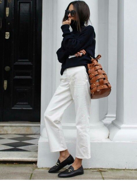 I think this is the easiest way to wear white jeans if you’ve been out of the white jean game for a long time. You could always add your black leather biker jacket from last week too. Monochrome is simple: just add a black top and black shoes, and away you go looking effortless and chic without a care in the world. Imagine actually not having a care in the world, how nice would that feel? I don’t think that’s humanly possible. Pretty much every time I feel relaxed, something pops into my head to worry about. Especially these days. But we can pretend, can’t we?