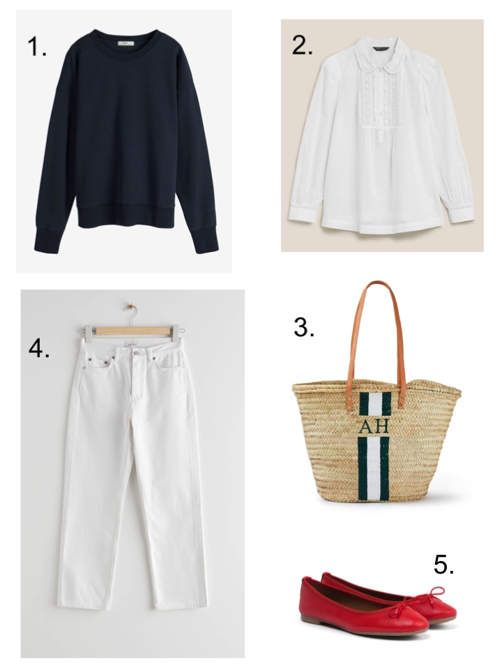 I imagine wearing this navy and white look à la Jackie O, on a trip to Cape Cod at some point in the future. We went on holiday to Cape Cod a few years ago and had a lovely time, despite the unseasonable rain. I doubt the Kennedys spent their afternoons in Hyannis Port eating deep-fried chicken wings in an old railway car sports bar, but I’m telling you that’s a great way to spend a rainy afternoon in the US of A. Although white jeans and hot wings are possibly not the best combination.