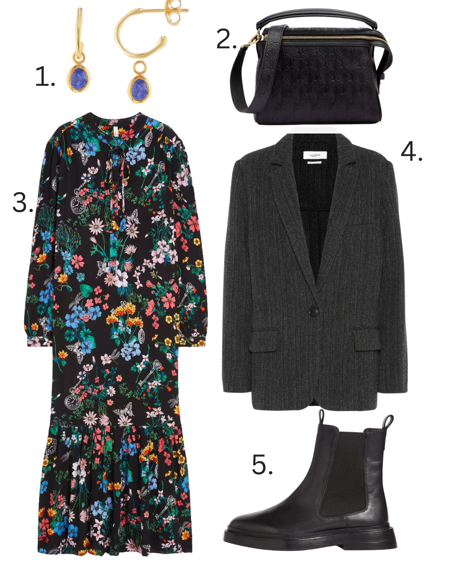 MIDI DRESS: I’d probably go with something patterned here as the rest of the list is quite plain and you only need to match your dress with your coat, so you don’t have to worry about clashing too much. I love this one from AND/OR at John Lewis. They’ve got a new creative director for this in-house brand and there are some really lovely things coming this season. I’m also keen on this one from Free People, although it’s a bit more maxi than midi, but the length is, of course, up to you.