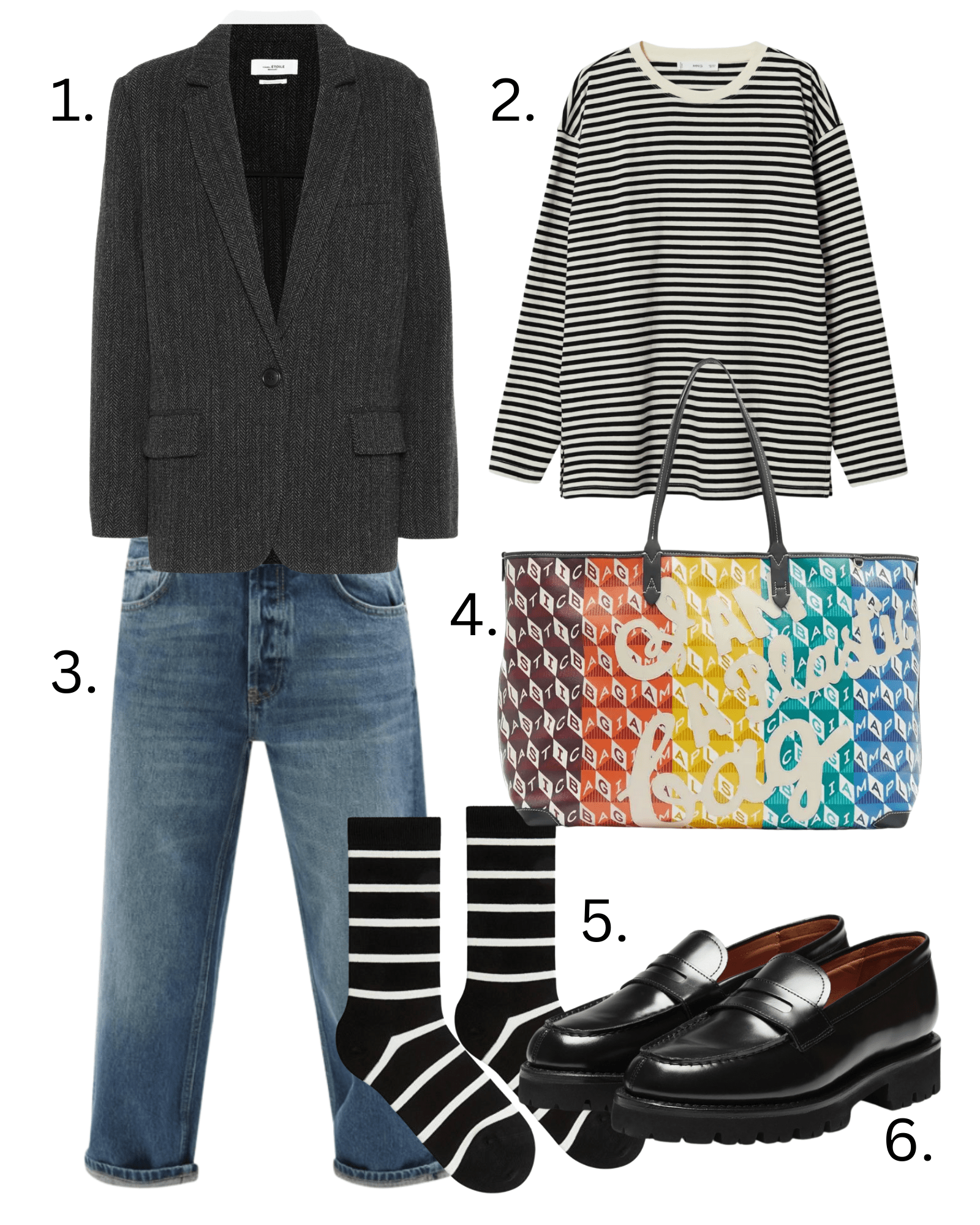 STRIPE TOP: I mean, always a staple in anyone’s wardrobe, right? I like the classic, thick cotton, long-sleeved version. Ivy are an independent small brand who do great ones, and this one from Mango is just right too.