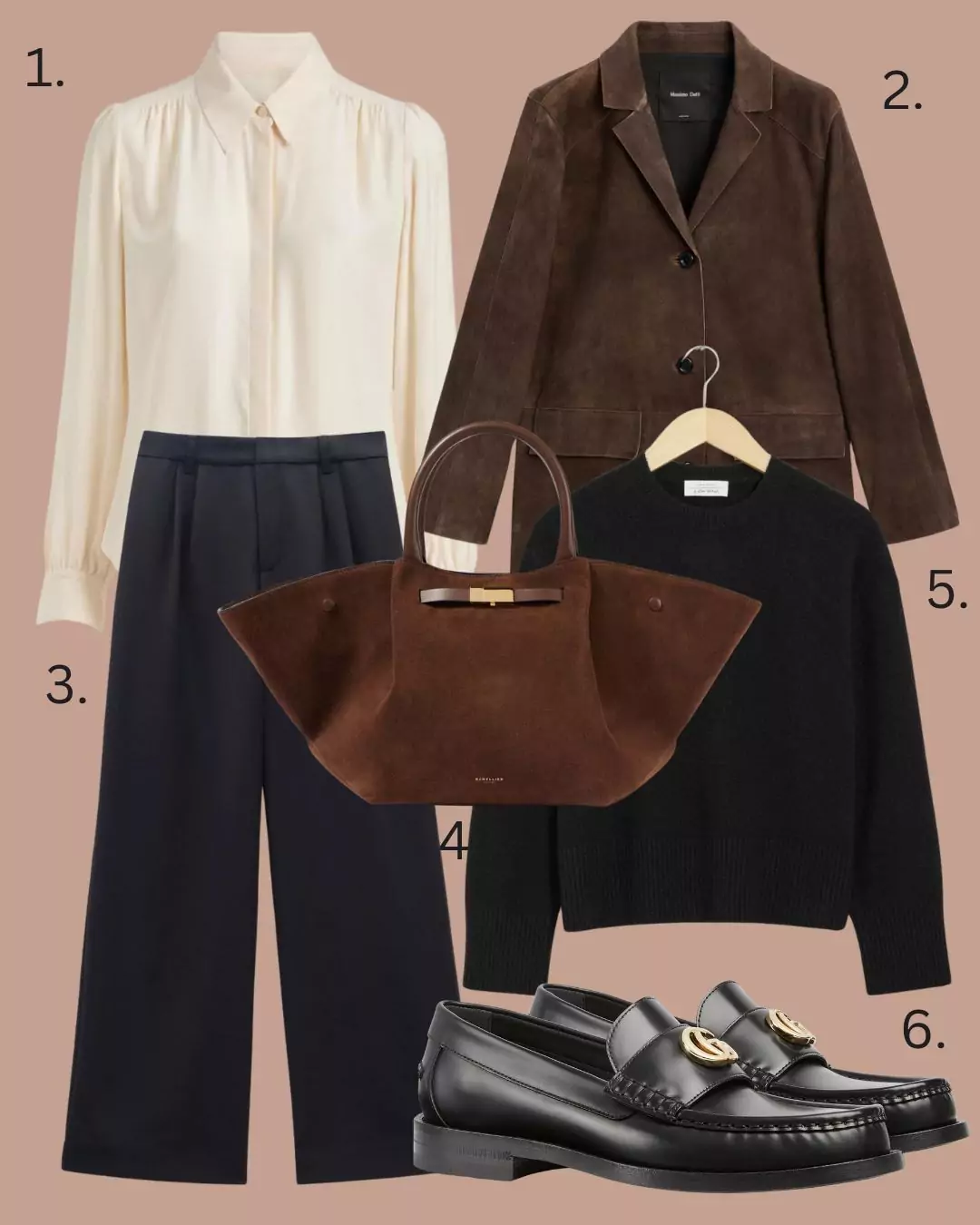 - White/cream silk blouse. It doesn’t HAVE to be silk, but it’s the perfect fabric to go from day to night. This one from Cefinn is beautifully designed.