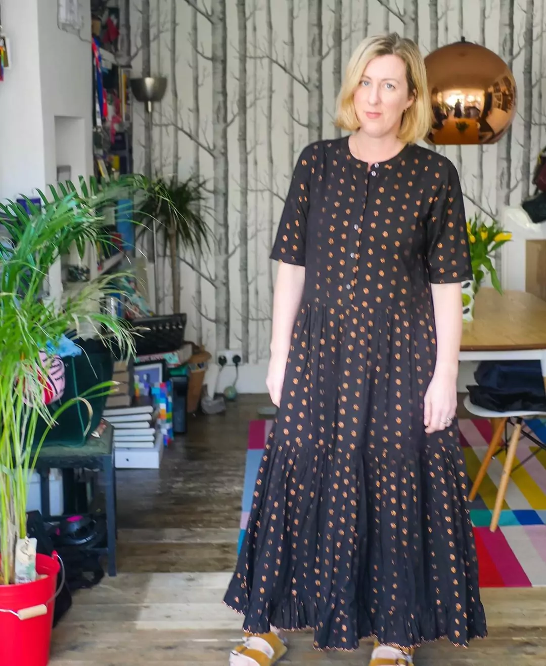 I felt like putting a dress on this afternoon. I still don’t feel like tidying up that part of the dining room where we have (for reasons I can’t fathom) 6 faux leather bound issues of ‘Jobmate’ DIY magazine from 1982 stacked up against the bookcase. Although if anyone wants to know how build a partition wall, hit me up . . . Dress [gift] @baileyandbuetow Slippers @birkenstock